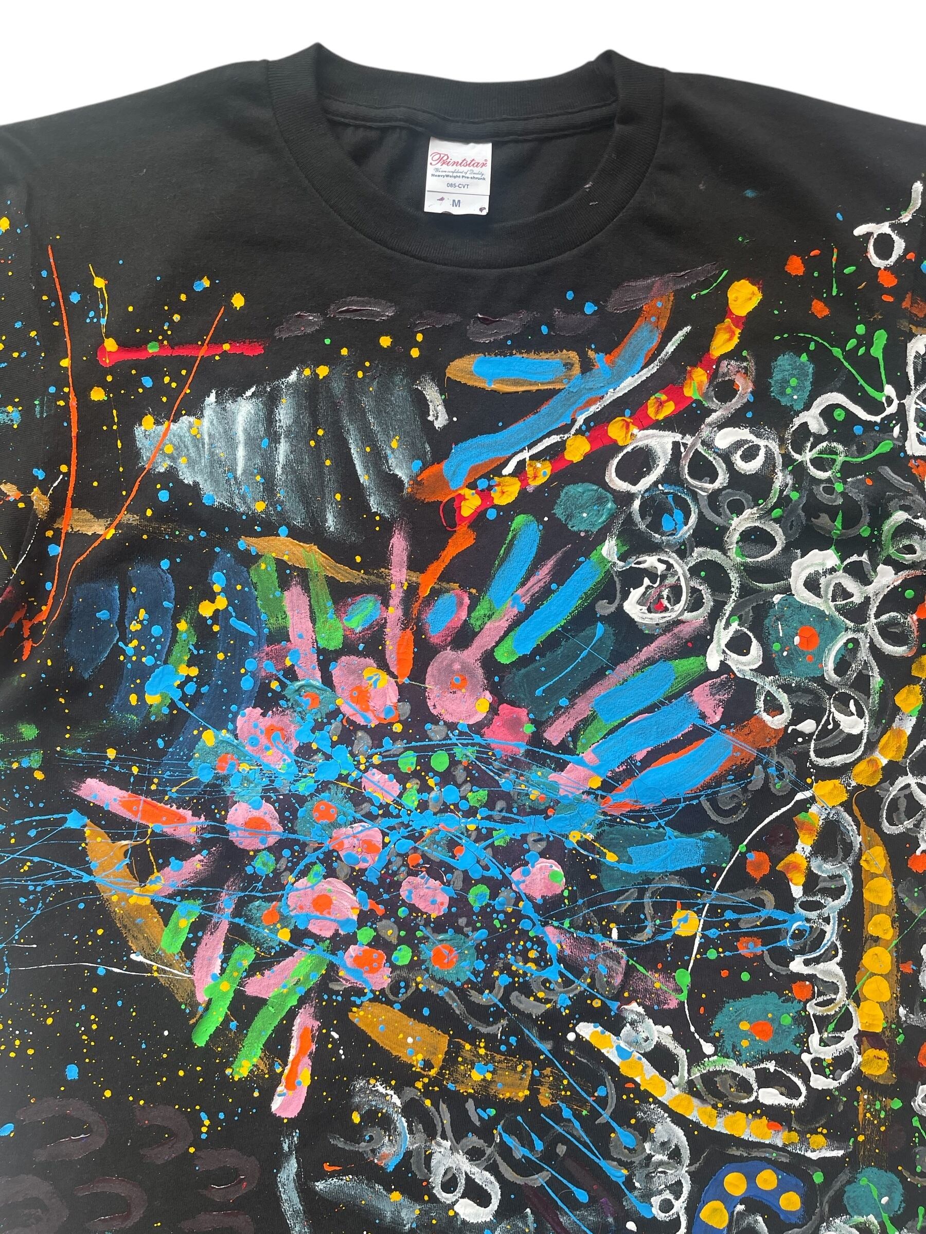 このお洋服は、布用の専用絵の具でペイントしています。