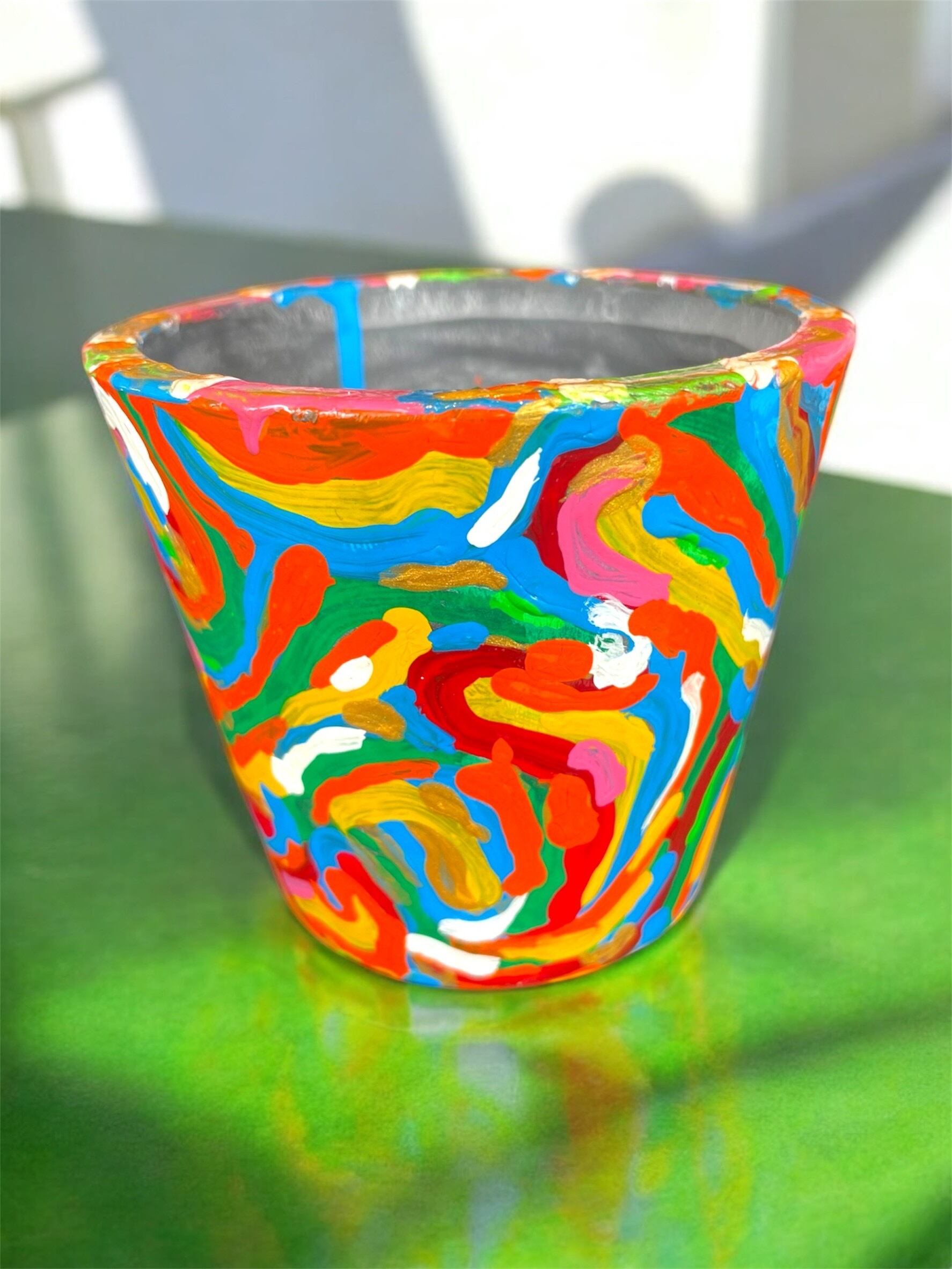 約10㎝×10㎝ 植物の鉢、小物入れとしてお使いいただけます。 アクリル絵の具の上からコーティングしております。