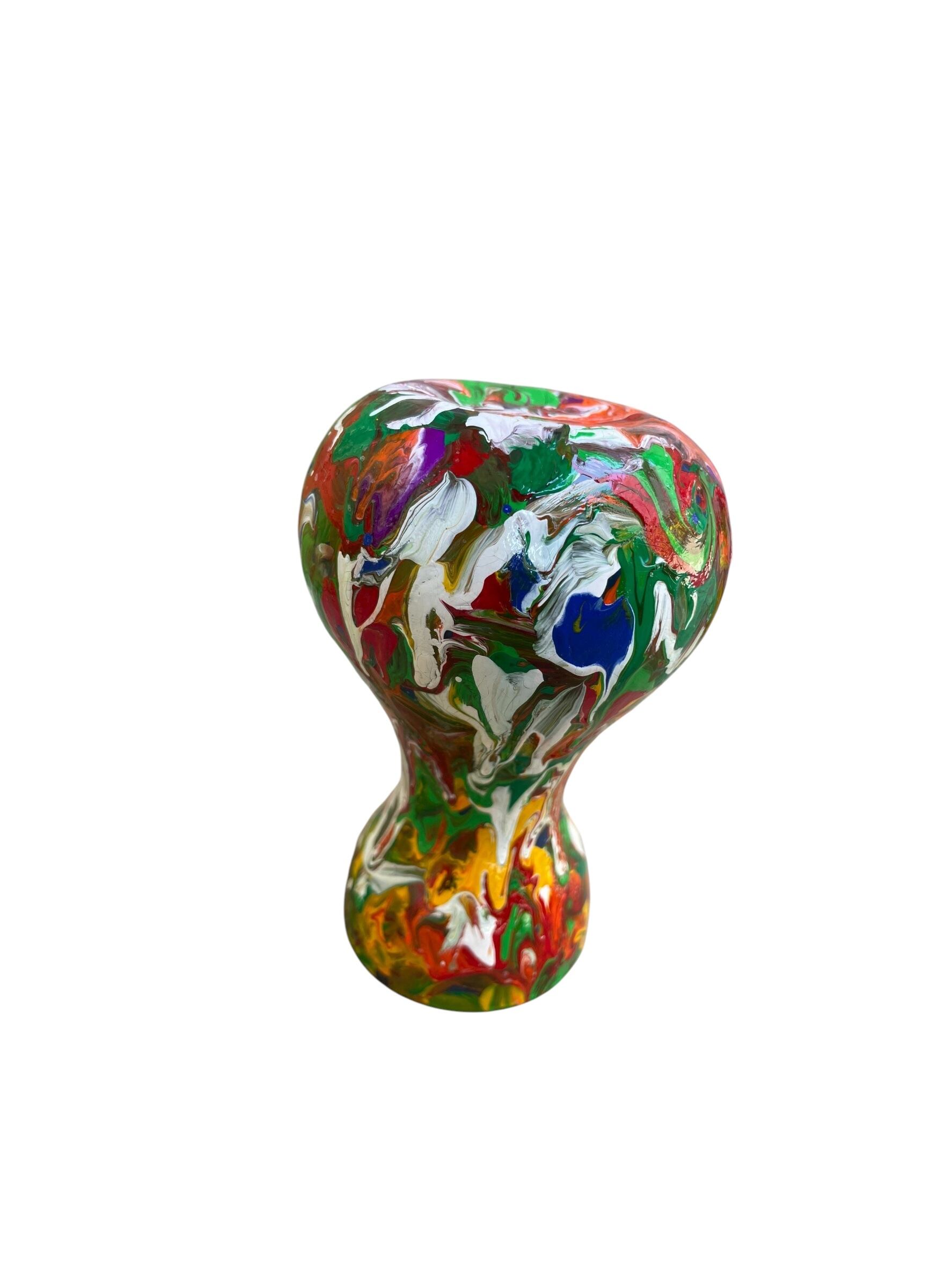 花瓶としてもオブジェとしてもお使いいただけます。 花瓶に直接アクリル絵の具で製作しております。 約14㎝×1番太い所10㎝