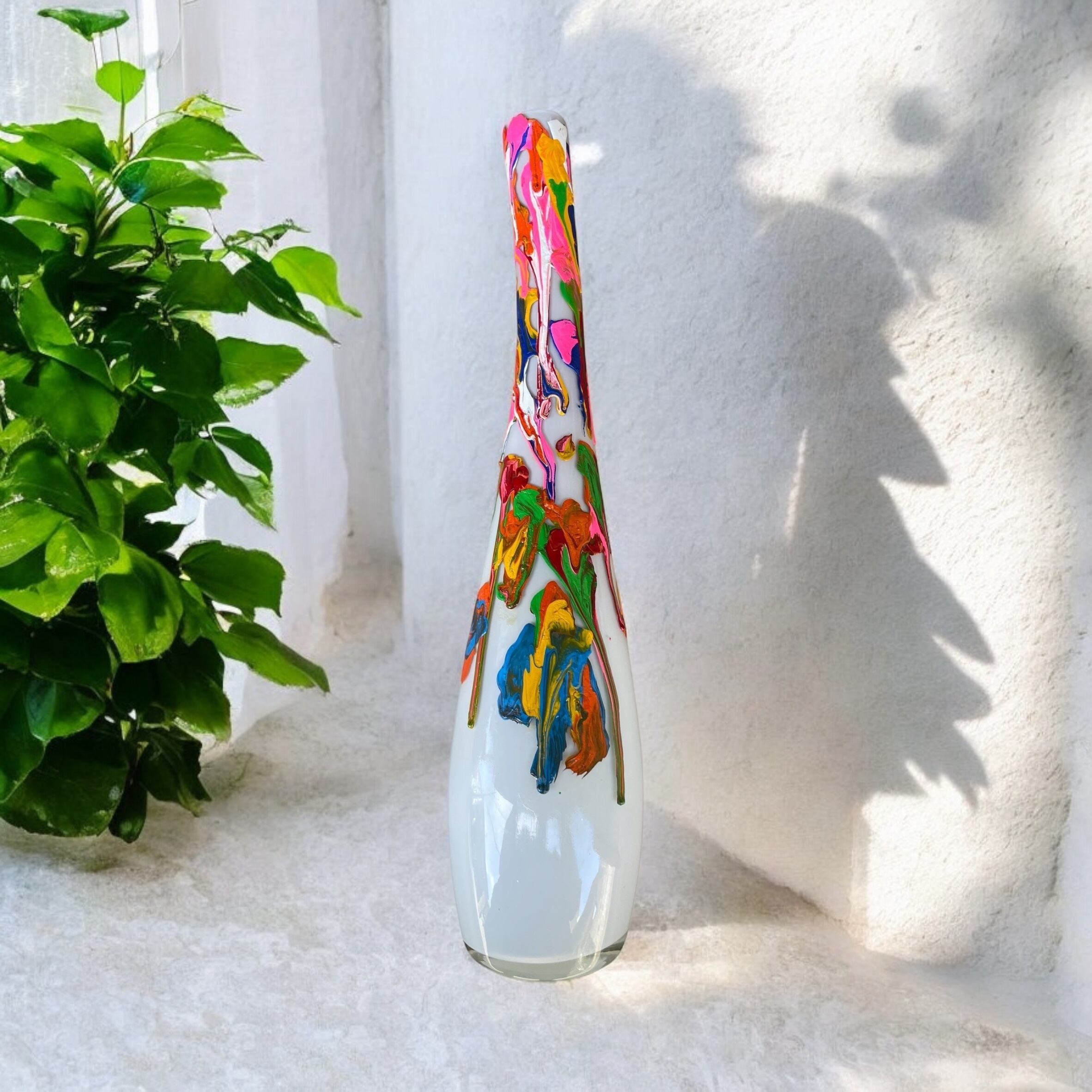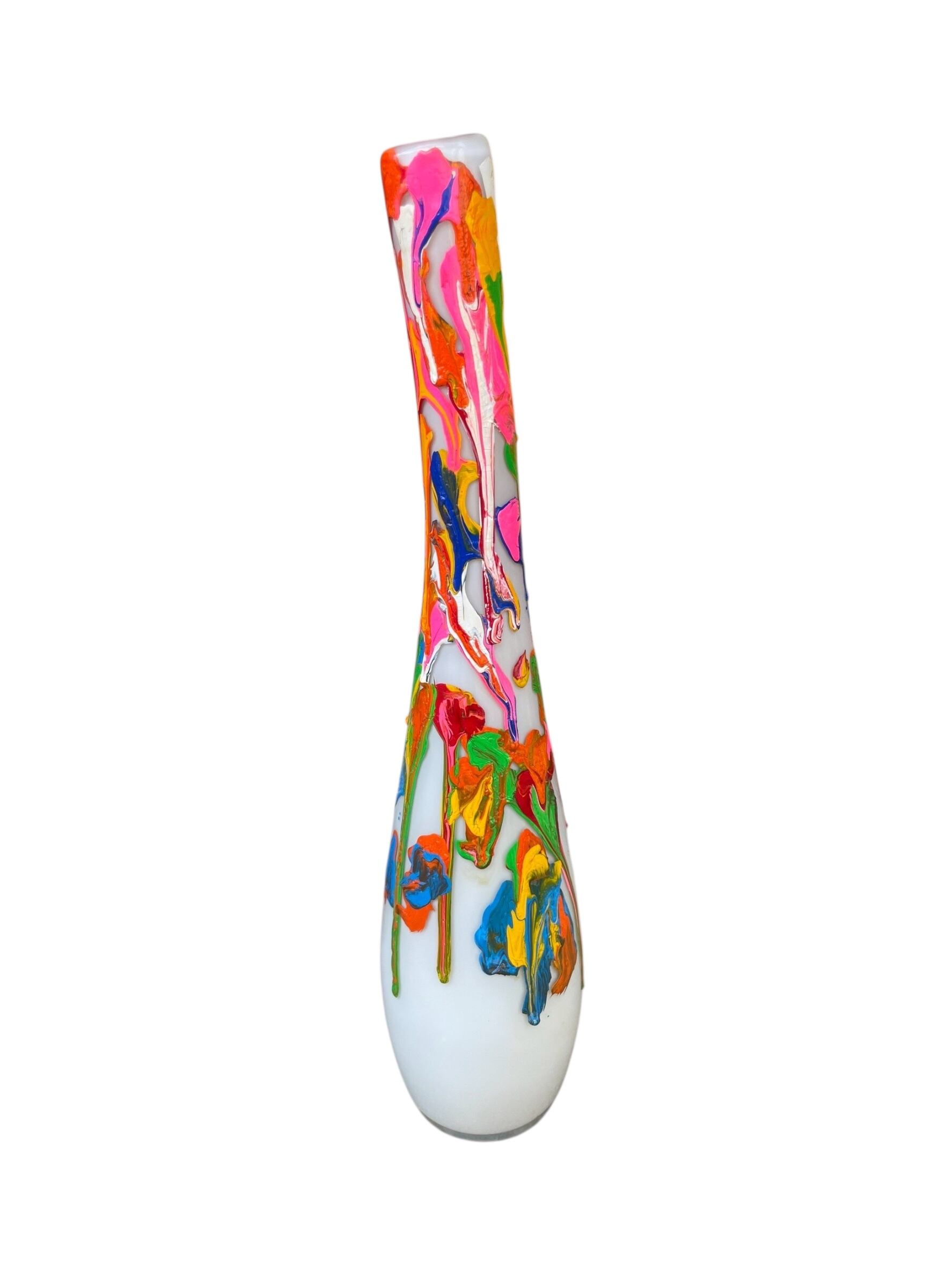 花瓶としてもオブジェとしてもお使いいただけます。 花瓶に直接アクリル絵の具で製作しております。 約37cm×8cm