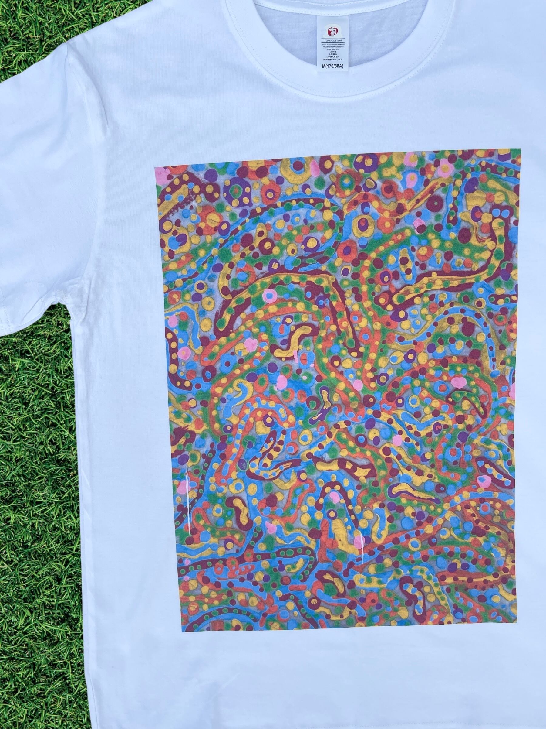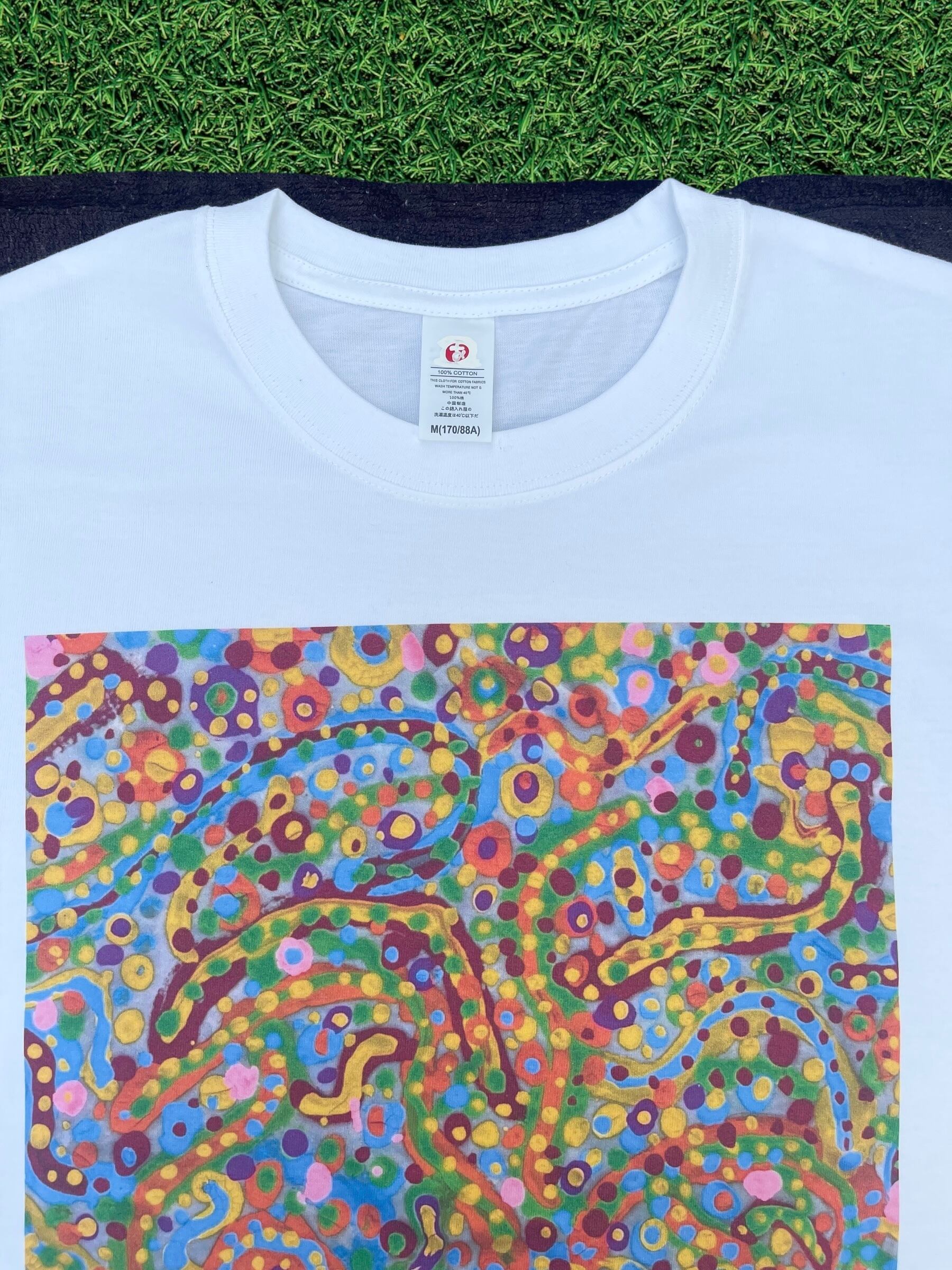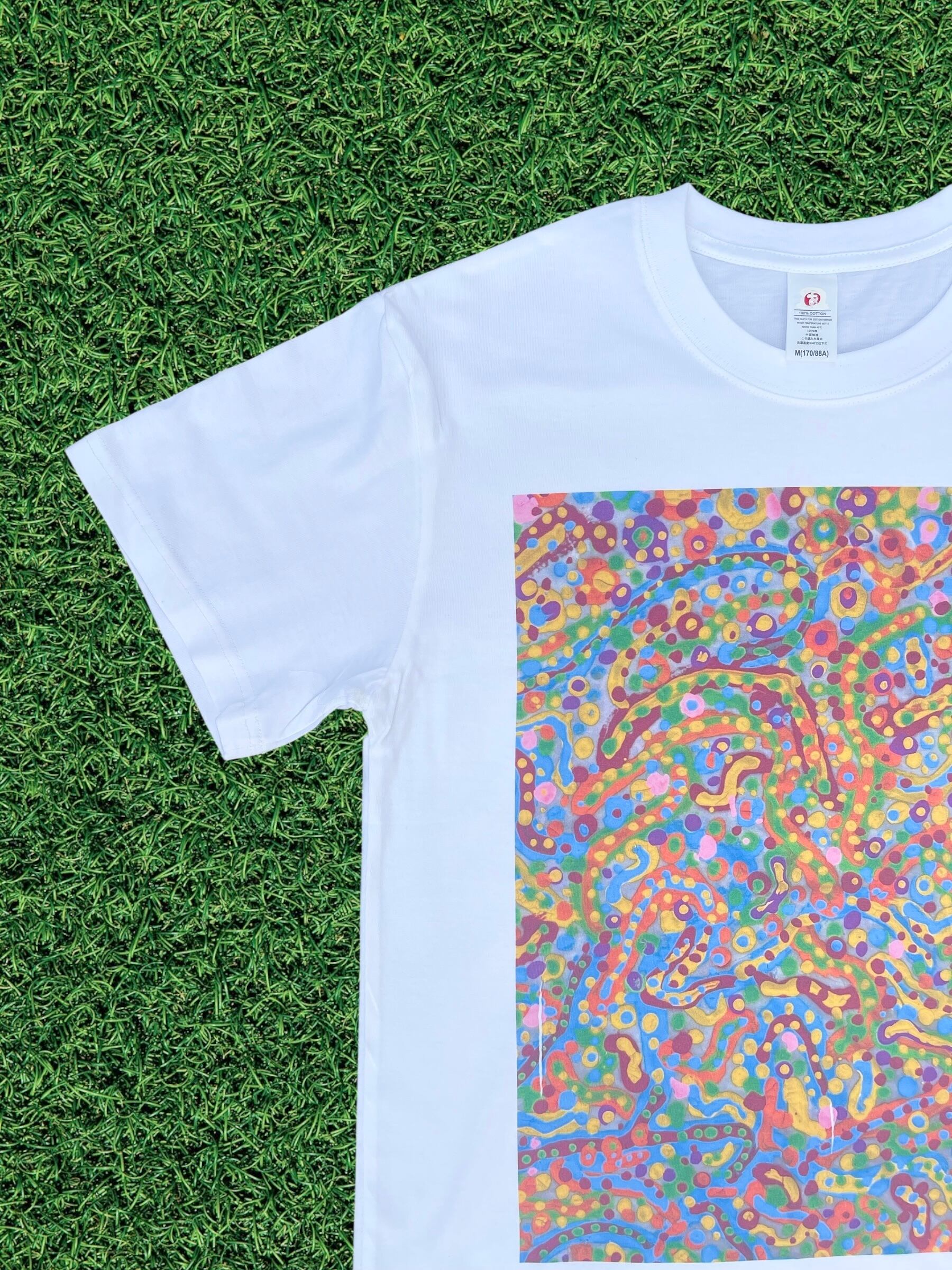 シンプルなシルエットにアートのアクセントが映える一枚です。