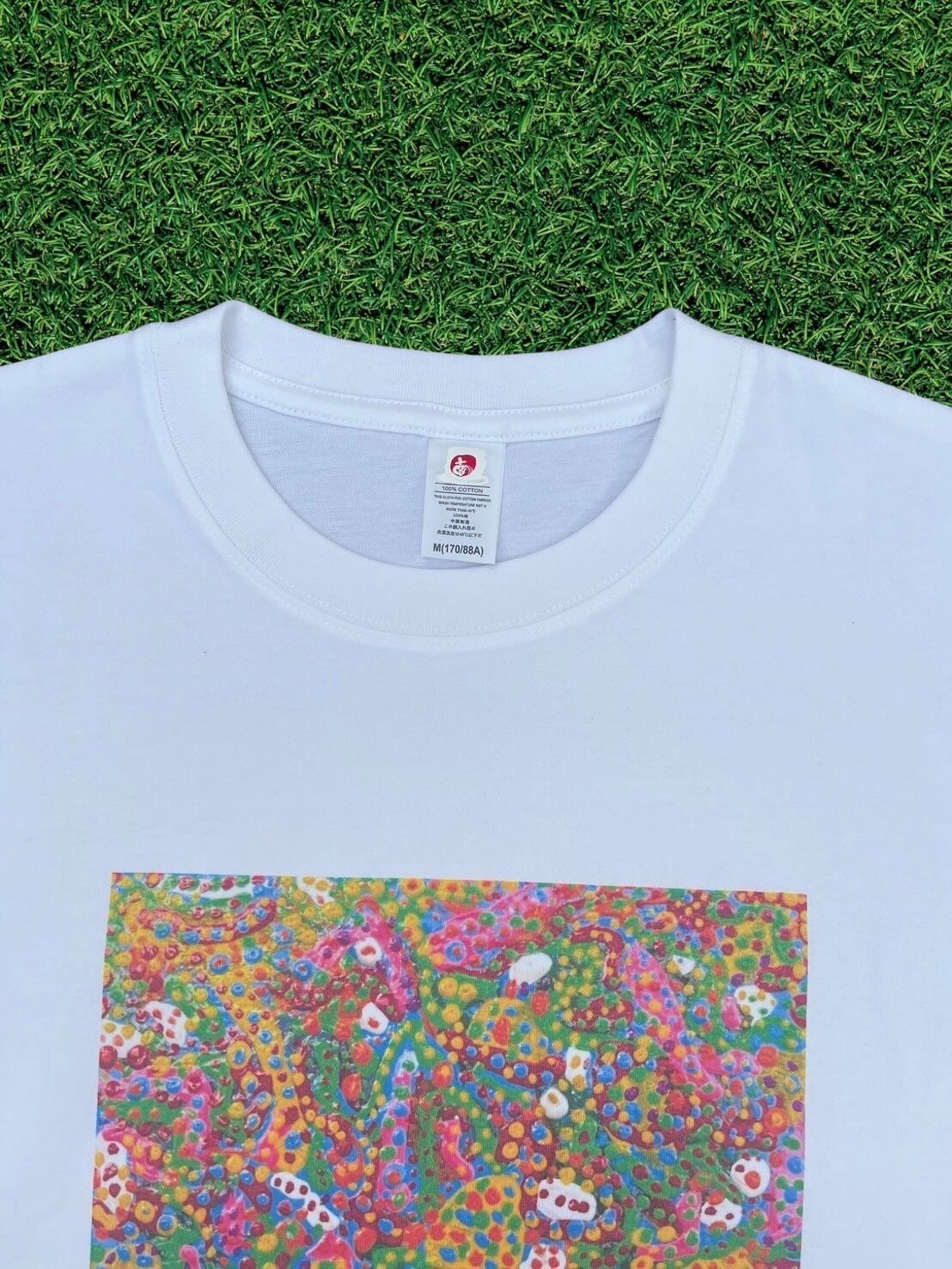 シンプルなシルエットにアートのアクセントが映える一枚です。